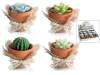 Velas con forma de suculenta en maceta de terracota con bolsa de yute y lazo. Vitrina con 12 unidades.