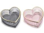 4 Unid Recipiente de vidrio en forma de corazón con borde dorado.