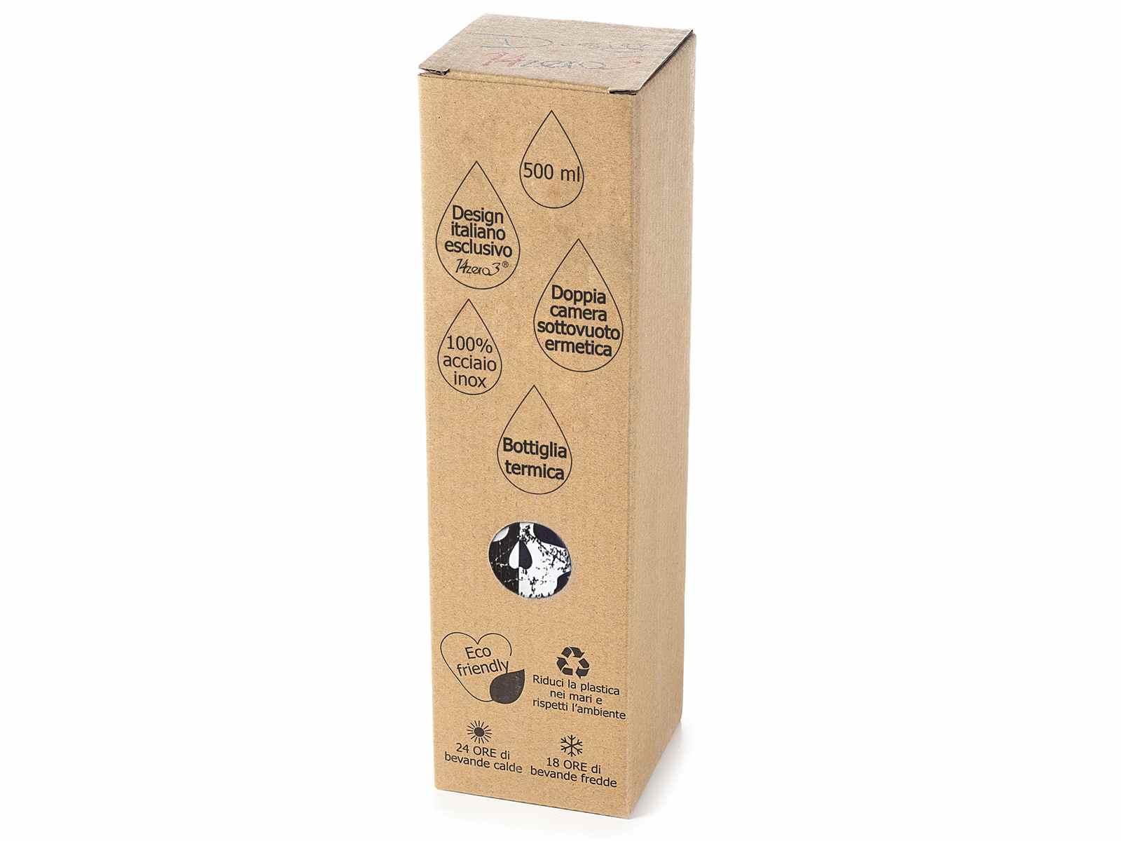 Acciao doppia camera. Tenuta: 24h caldo e 18h freddo. In scatola singola. Con scovolino pulisci bottiglia