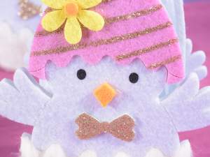 Bolsas de Pascua en tela color pollito con flor en relieve