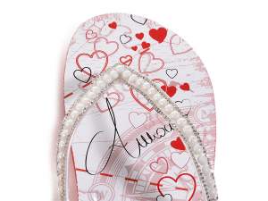 Chanclas de mujer, estampados de flores y corazones con cordón con perlas y pedrería