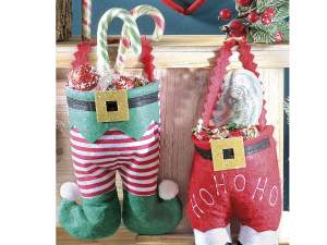 Bolsas de regalo navideñas de tela con forma de pantalones de Papá Noel y elfo con asa de hebilla con purpurina dorada cm 17 x 18 H (c/manico 26).