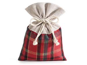 Bolsas de terciopelo navideñas / Bolsas de regalo con decoraciones y tirador bordado de Feliz Navidad y tartán Ø12cmx22H (al tirante17). Ideale per mini panettoni