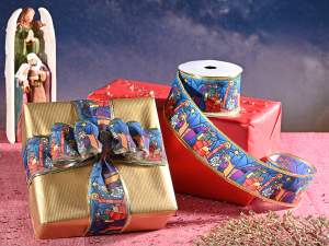 Cintas navideñas estampadas en Grossgrain en expositor de 27 piezas