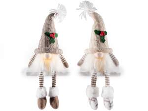 Duendes navideños de patas largas en tela y pelo ecológico para colocar