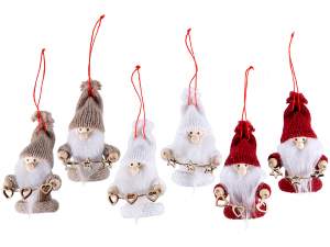 Papá Noel de tela con bolsa de regalo para colgar en el árbol de Navidad, en expositor de 12 piezas