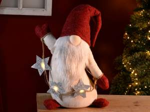Papá Noel / gnomo de tela con luz LED, estrella y corazón en su gorro.