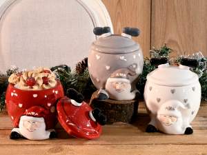 Contenedores navideños de cerámica con asas y Papá Noel en 3D