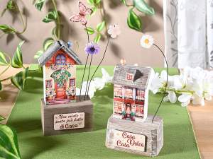 Cajas de madera efecto corcho con gancho y adornos familiares