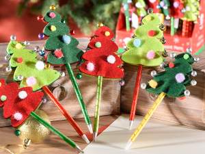 Bolígrafos de tela coloridos para árbol de Navidad con campanas decorativas en expositor de 24 piezas