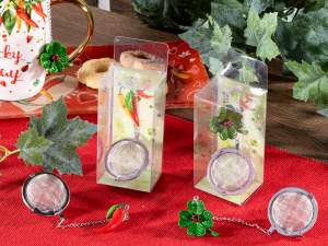 Esferas navideñas en portavelas de vidrio con adornos navideños