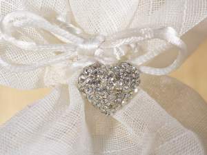 Bolsas de confeti / regalos de boda con temática de amor para recién casados efecto satinado con corazones de metal dorado y cordón